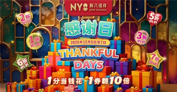 澳门旅游业近期呈现蓬勃态势,继第十五届全国运动会期间吸引超过200万游客赴澳观赛旅游,2025年第三季本地生产总值更录得8.0%的实质增长。承借这股消费动能,NY8新八佰伴将于12月5日至7日举办年度”THANKFUL DAYS 感谢日”,以百万让利规模响应市场热潮,进一步激活澳门”旅游+购物”的融合效应。