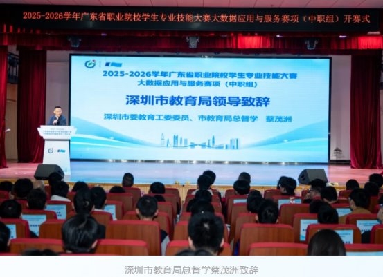 开幕式上,深圳市教育局总督学蔡茂洲指出:“我们正处在人工智能深刻重塑生产生活方式的时代,未来的技能人才要走在时代前列,需要具备与智能时代相匹配的综合素养。”他表示,本次大赛的举办,不仅是广东省职业院校大数据专业教学成果的一次集中检阅,更是培育高素质技术技能人才、赋能区域数字经济高质量发展的重要举措。