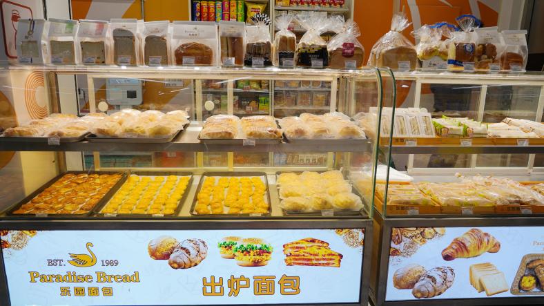 【便利+烘焙复合店|坝头站】为满足市民对高品质、便捷生活的需求,天福与东莞本土知名烘焙品牌“乐园面包”合作,推出“便利店+现烤面包”复合业态,提供即买即享的烘焙产品,打造“营养早餐&轻盈日间食”一站式消费场景,进一步升级便民服务体验。
